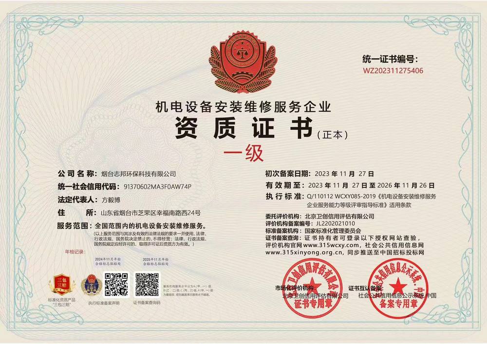 機(jī)電設(shè)備安裝維修服務(wù)企業(yè)資質(zhì)證書 一級(jí)